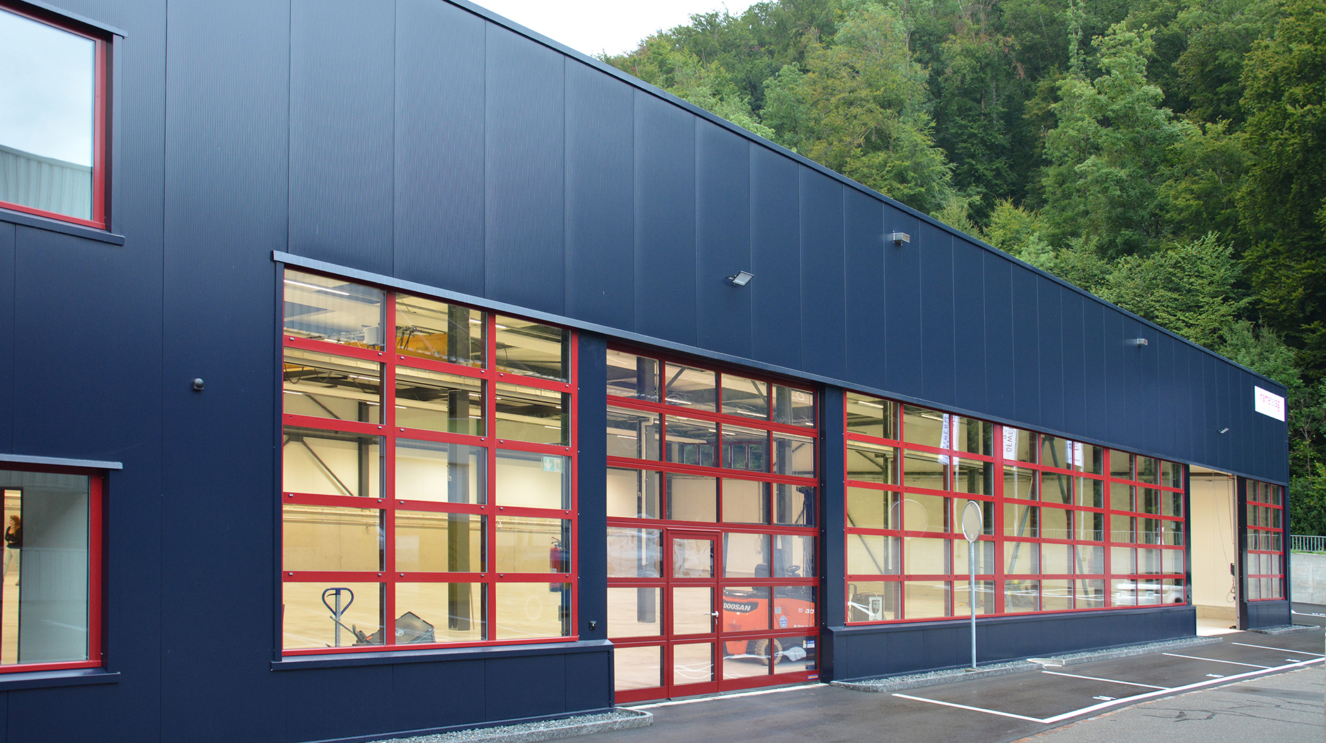 • Der Büroteil als Skelettbau in Beton errichtet, mit einer Massiven Wand gegen die Halle. Diese Rückwand mit Beton-Erdbebenscheiben ausgebildet, welche aus Kostengründen möglichst klein gehalten wurden. Der Rest der Trennwand zur Halle ist aus Kalksandstein.