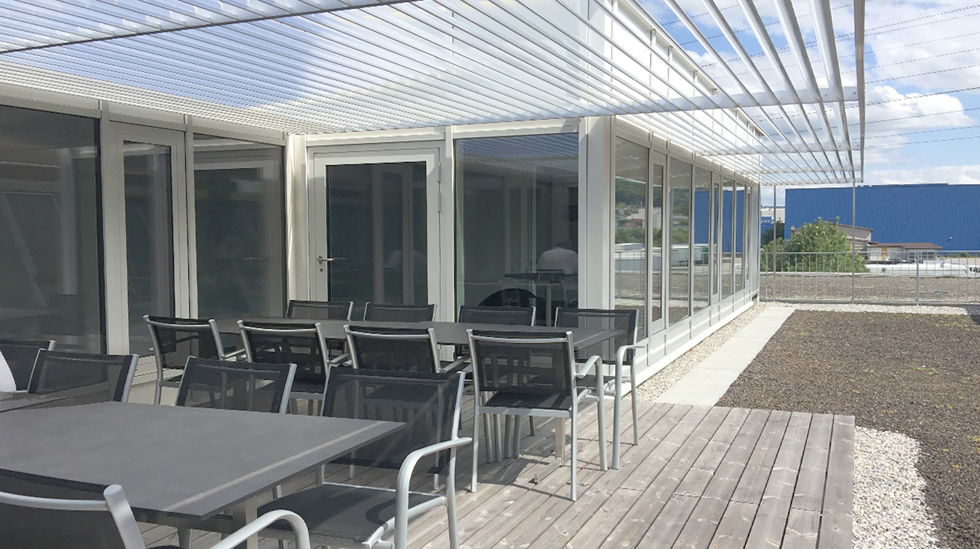 unabhängige Mini-Träger eingebaut, welche die alte Hallendecke nicht belasten. - Ein willkommener Nebeneffekt der Dachaufstockung ist der insgesamt leicht gesunkene Energiebedarf des